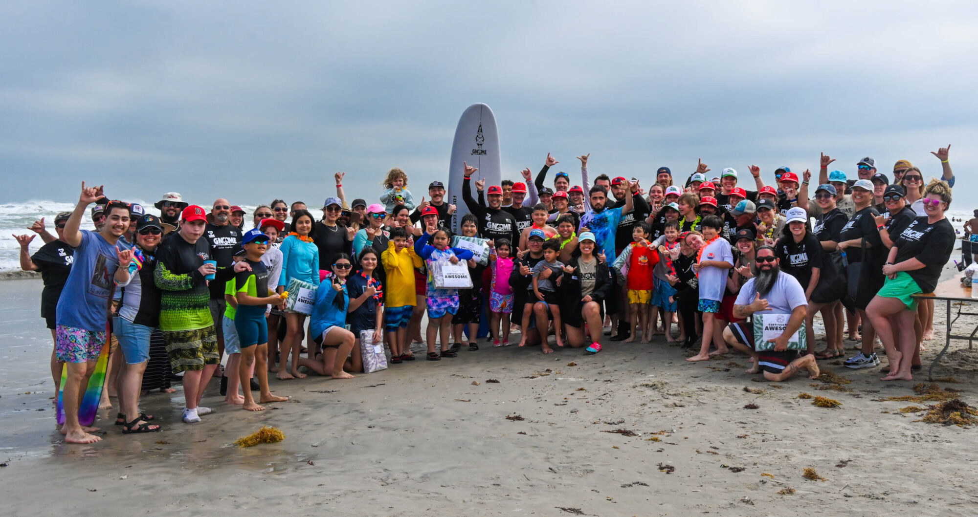 At Gnome Surf Therapy’s Little Legends Wave Fest, “fitting in” isn’t a requirement—it’s a guarantee. This epic one-day camp is built for neurodivergent athletes to shine exactly as they are. Dive into surf therapy sessions tailored to all abilities, unwind with sensory-friendly beach art, challenge new friends in adaptive sand games, and flow through surf-inspired yoga. By sunset, every athlete steps into the spotlight at our award ceremony, celebrated not just for their courage but for their unique magic—with swag bags from our corporate partners to prove it.